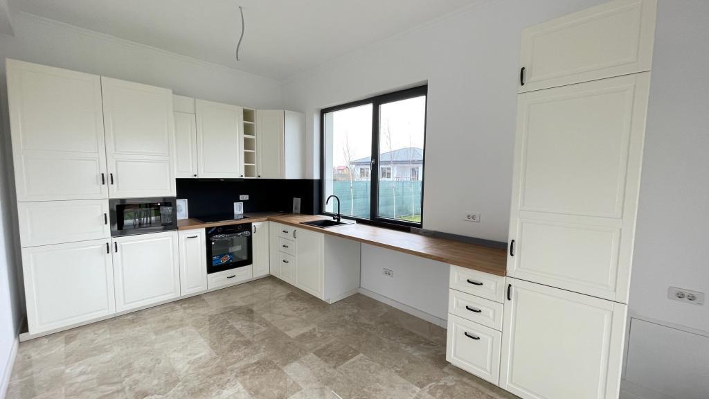 | الوصف: | Amplasata intr-un cartier rezidential cu strazi asfaltate, iluminate si securizate, proprietatea propusa spre vanzare este edificata pe un teren generos de 810 mp, amenajat cu o gradina superba cu arbusti decorativi si sistem automat de irigare. Complexul este finalizat de peste 5 ani, toate casele sunt locuite iar comunitatea formata este una exclusivista. Constructia casei este realizata din stalpi de beton armat cu zidarie exterioara din caramida porotherm de 25 cm si termosistem din polistiren de 10 cm peste care s-a aplicat vopsea decorativa. Livingul generos de 30 mp este placat cu parchet special pentru incalzirea in pardoseala. Holul si bucataria in suprafata de 17 mp, sunt placate cu piatra naturala, Marmura. Terasa de la intrare in casa este amenajata cu travertin, precum si cea exterioara din zona livingului. Glafuri de la geam interior si exterior sunt realizate din Granit Casa se vinde de la proprietar, persoana fizica, nepurtatoare de tva. Va astept cu drag la vizionare! |